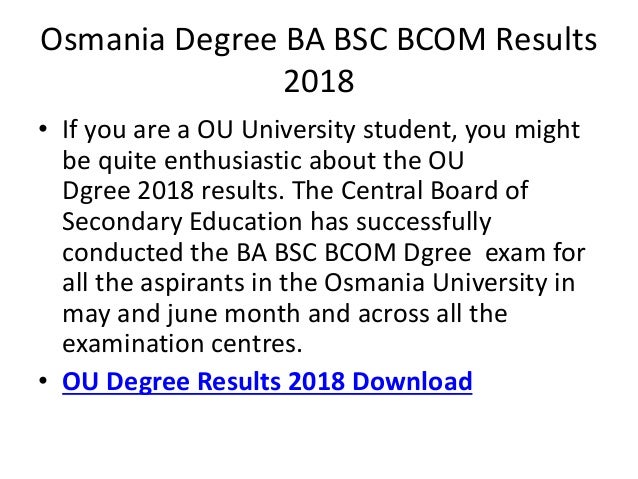 Osmania University Degree Results 2018 Declared On Osmania Ac In Manabadi Com The Financial Express The osmania university (ou) has declared the results of annual examinations of ba/bcom/bsc i, ii & iii year on its official website osmania.ac.in.