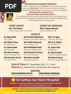 Sri Satya Sai Heart Hospital Rajkot / Ssshh, rajkot is the only hospital located in western cost of india, where poor.