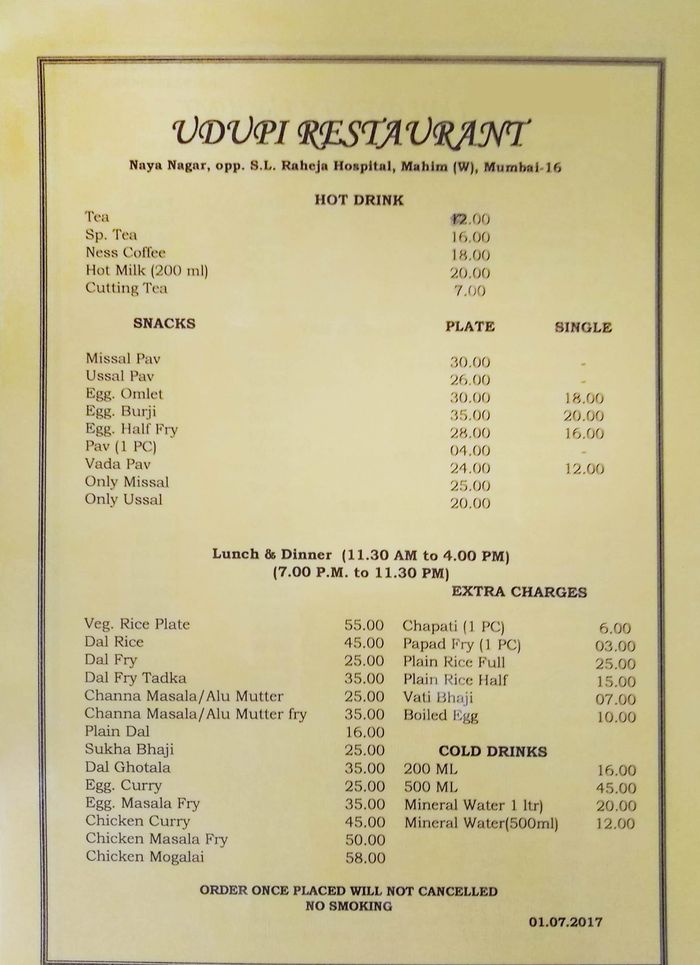 Udupi Menu - Best indian delivery in chicago.